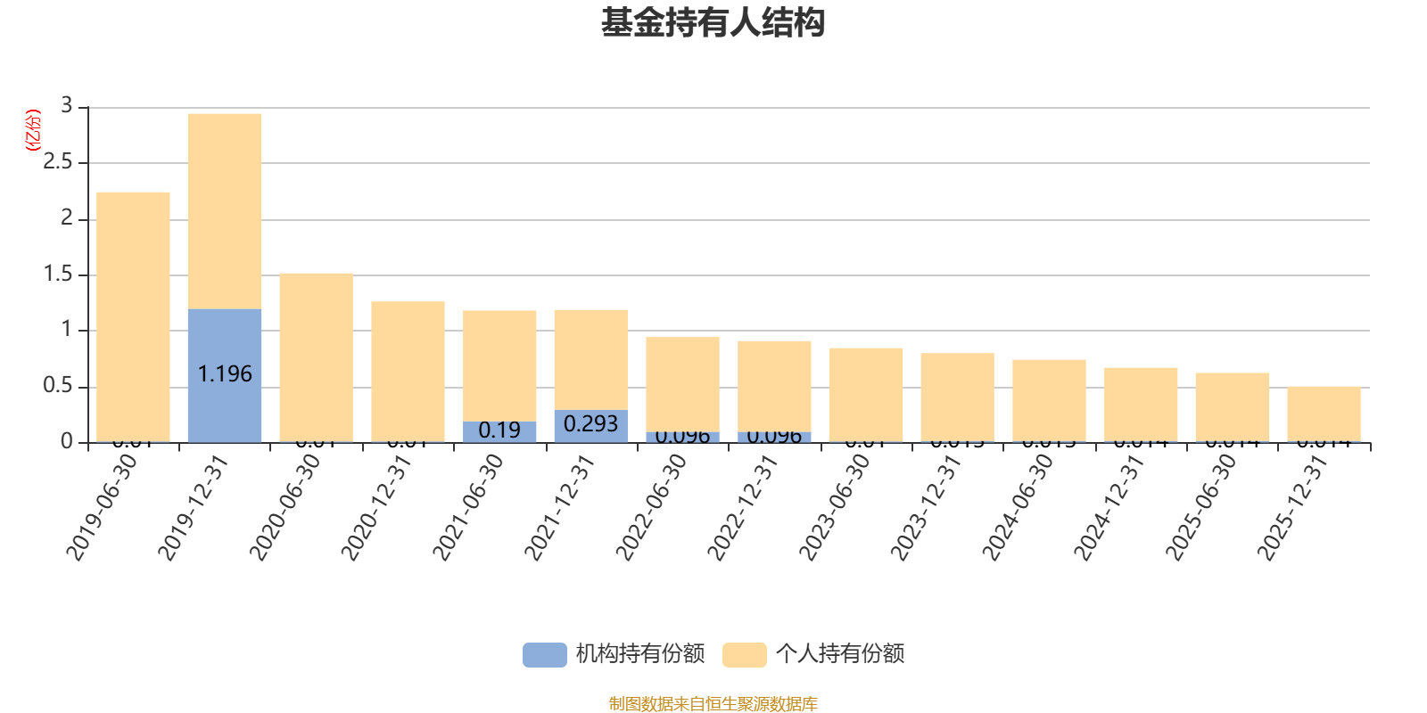 截至2025年12月31日,基金持有人共计2714户,合计持有4998.39万份。其中管理人员工持有396.39份,机构持有份额占比2.82%,个人投资者占比97.18%。
