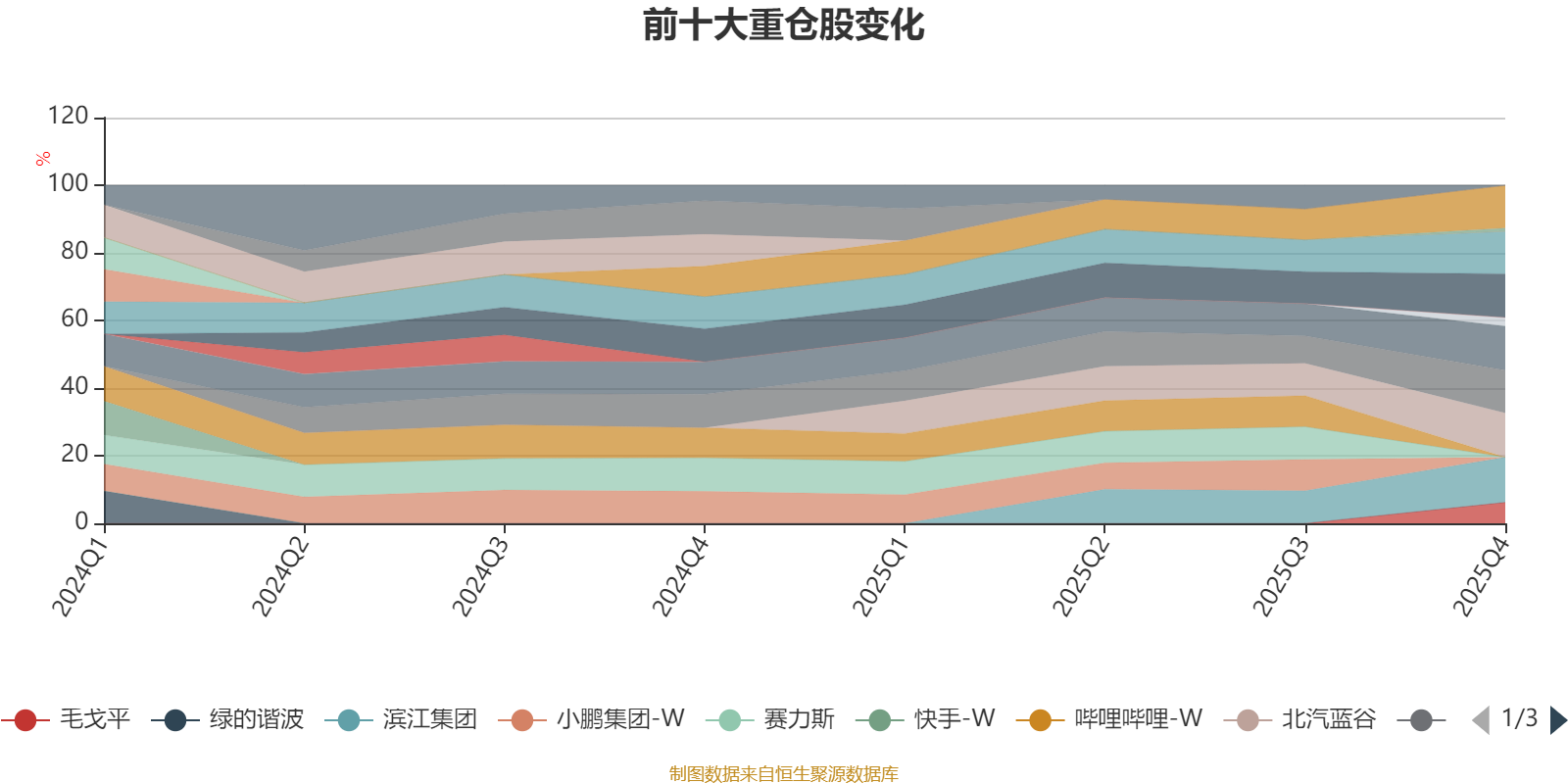 该基金持股集中度较高,近2年前十大重仓股集中度长期超过60%。截至2025年末,基金十大重仓股分别是滨江集团、北汽蓝谷、江淮汽车、石头科技、小米集团-W、泡泡玛特、理想汽车-W、毛戈平、建发国际集团、江南布衣。