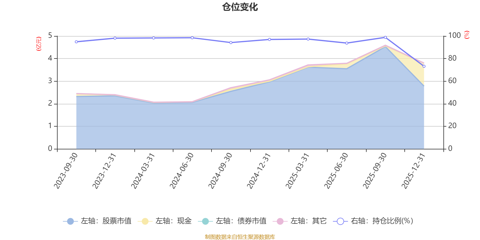 据定期报告数据统计,成立以来平均股票仓位为94.38%,同类平均为85.83%。2025年三季度末基金达到98.79%的最高仓位,2025年末最低,为73.19%。