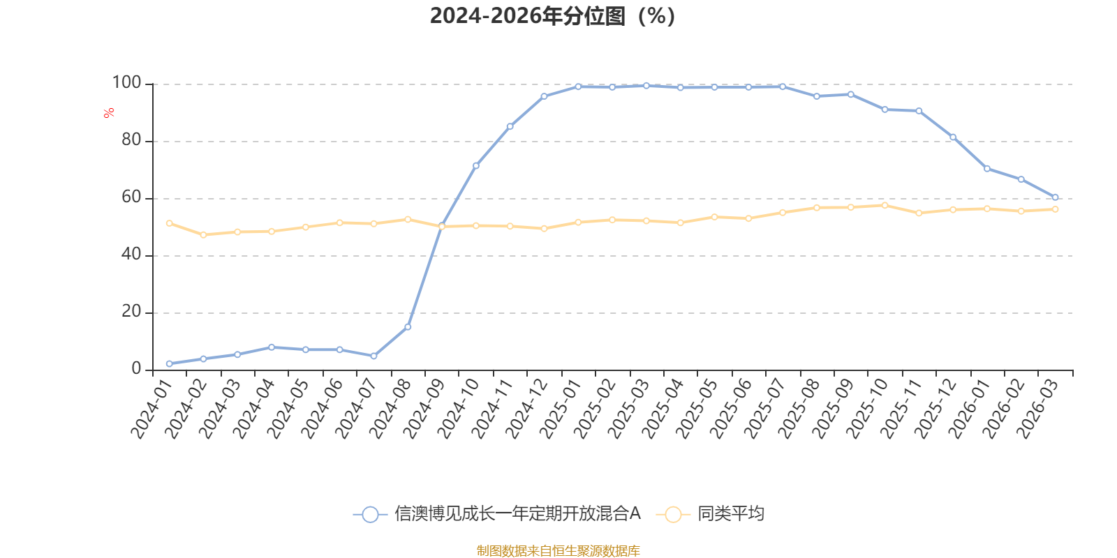 通过所选区间该基金净值增长率分位图,可以观察该基金与同类基金业绩比较情况。图为坐标原点到区间内某时点的净值增长率在同类基金中的分位数。
