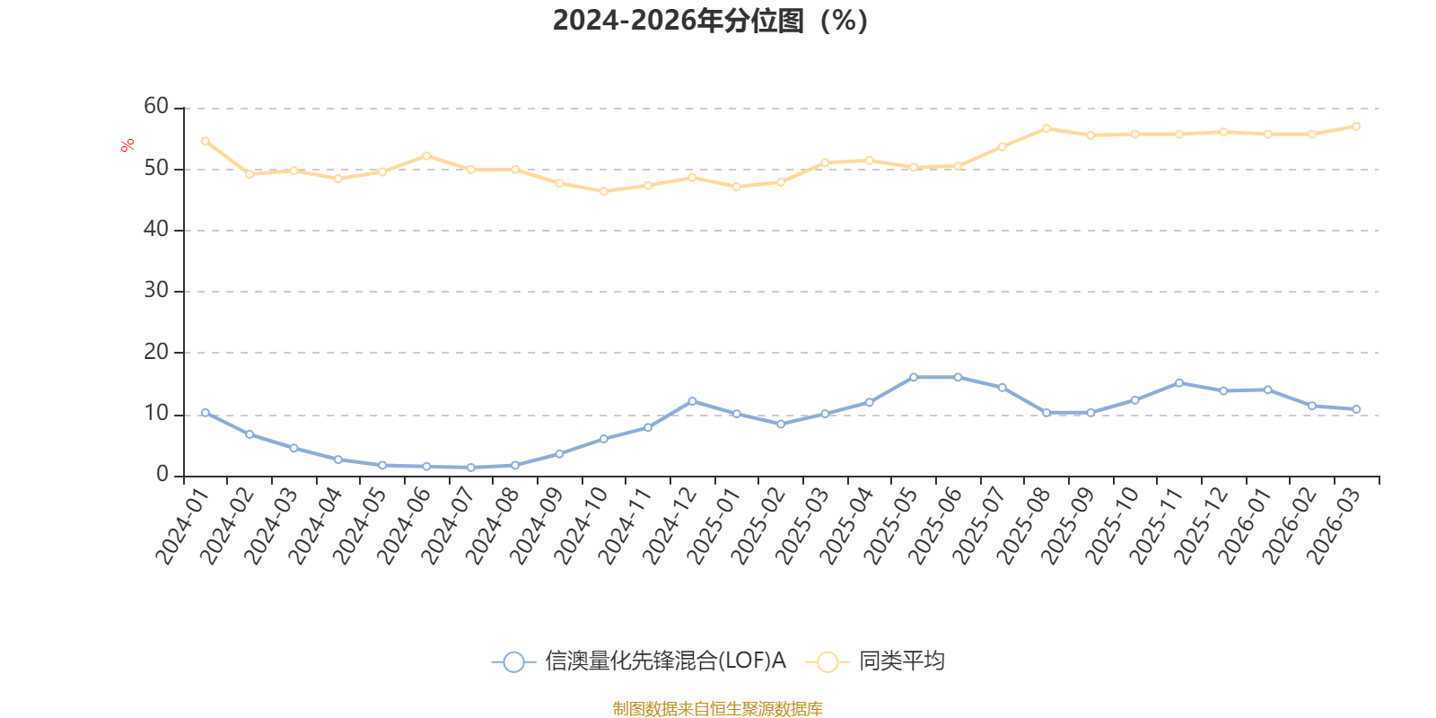 通过所选区间该基金净值增长率分位图,可以观察该基金与同类基金业绩比较情况。图为坐标原点到区间内某时点的净值增长率在同类基金中的分位数。
