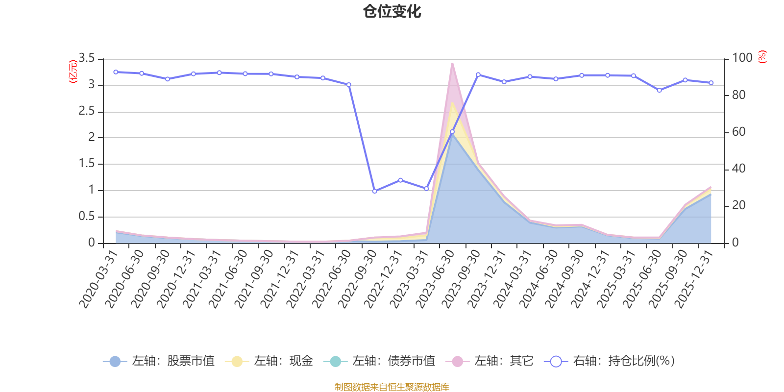 据定期报告数据统计,近三年平均股票仓位为81.66%,同类平均为84.04%。2020年一季度末基金达到92.85%的最高仓位,2022年三季度末最低,为28.23%。