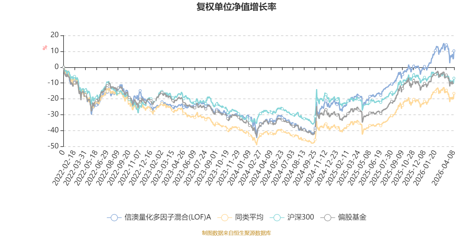 截至4月8日,信澳量化多因子混合(LOF)A近三个月复权单位净值增长率为4.22%,位于同类可比基金170/689;近半年复权单位净值增长率为10.34%,位于同类可比基金160/689;近一年复权单位净值增长率为49.82%,位于同类可比基金241/685;近三年复权单位净值增长率为44.26%,位于同类可比基金63/417。