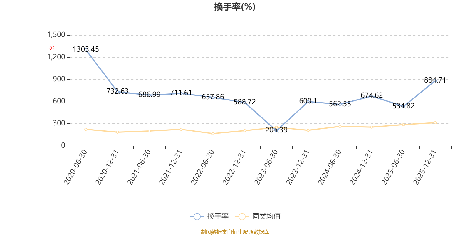 截至2025年12月31日,基金最近一年换手率约1439.73%,持续2年高于同类均值。
