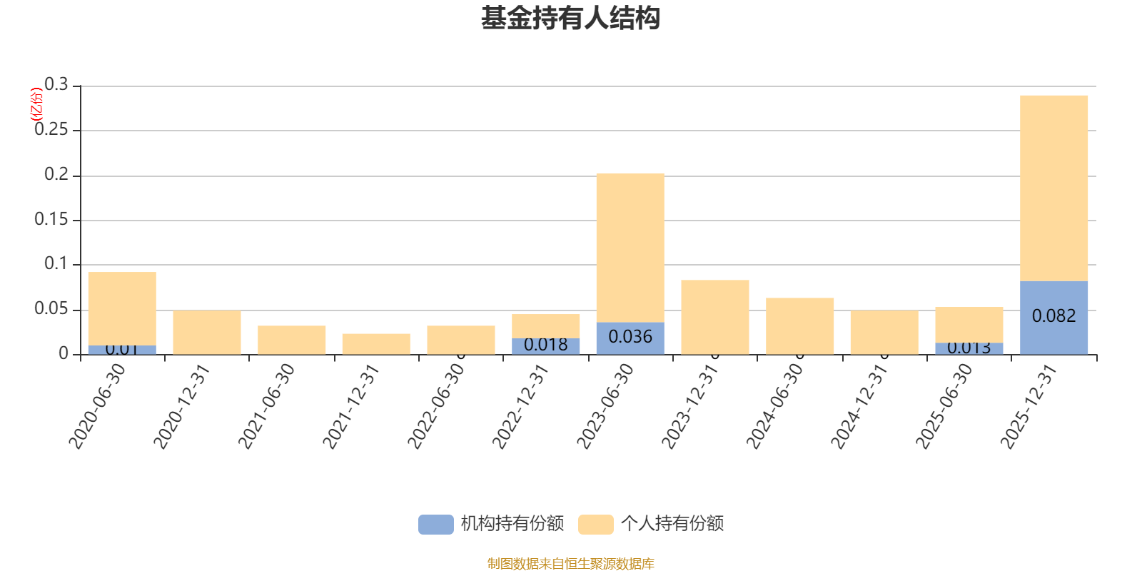 截至2025年12月31日,基金持有人共计747户,合计持有2888.16万份。其中管理人员工持有8.42万份,占比0.29%,机构持有份额占比28.29%,个人投资者占比71.71%。