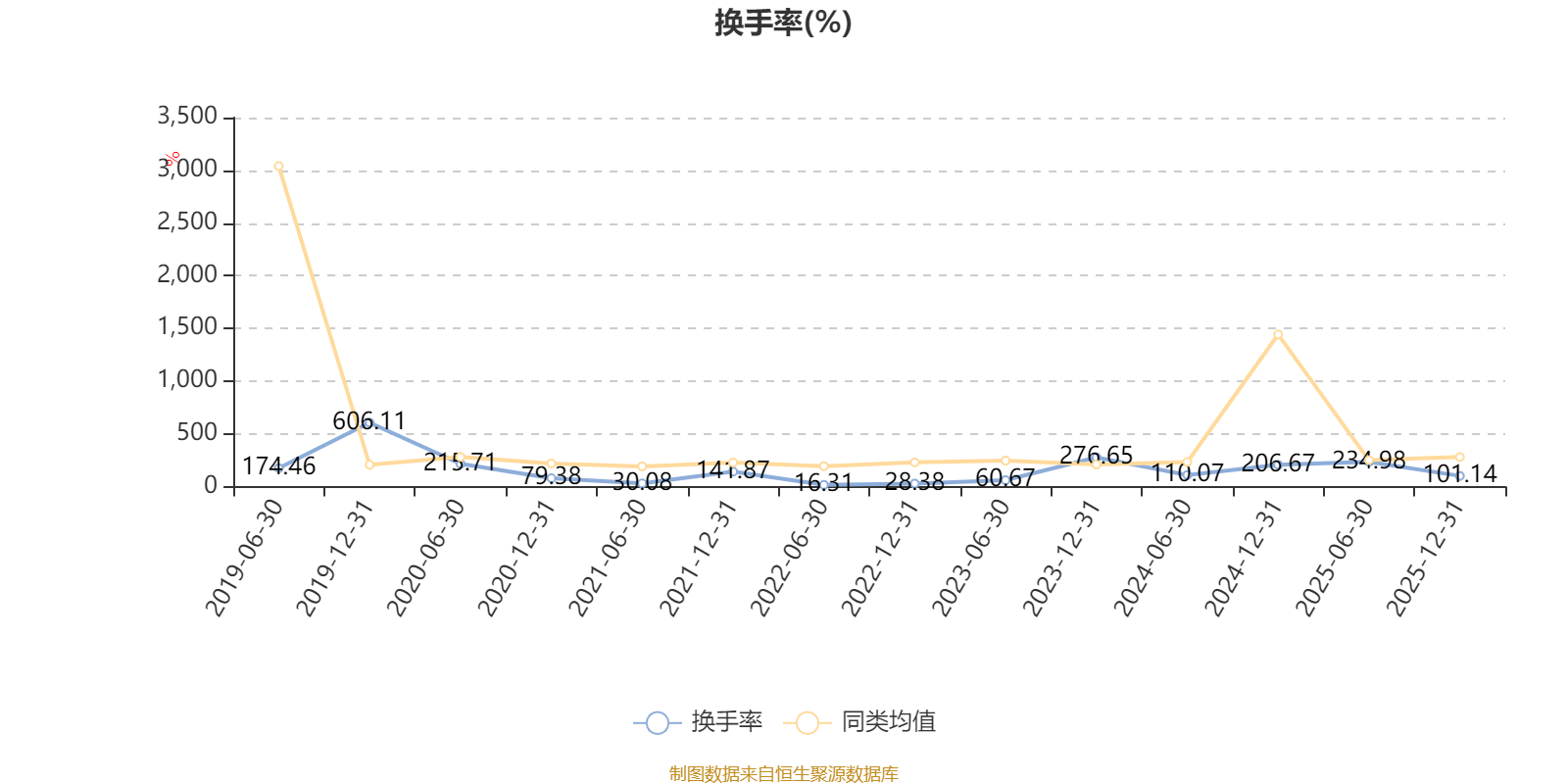 截至2025年12月31日,基金最近一年换手率约369.48%,持续2年低于同类均值。