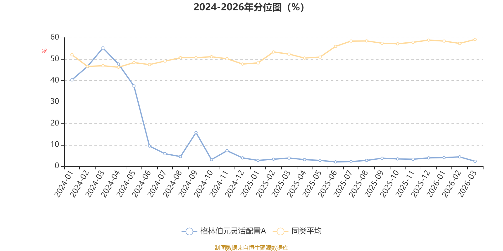 通过所选区间该基金净值增长率分位图,可以观察该基金与同类基金业绩比较情况。图为坐标原点到区间内某时点的净值增长率在同类基金中的分位数。