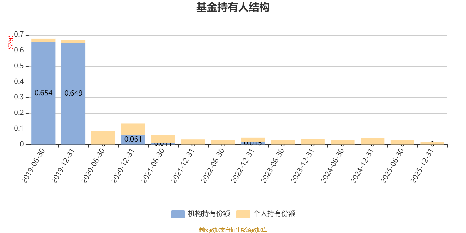 截至2025年12月31日,基金持有人共计732户,合计持有184.03万份。其中管理人员工持有3.76万份,占比2.04%,机构持有份额占比0.00%,个人投资者占比100.00%。