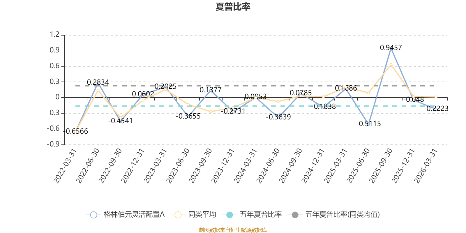 截至3月31日,基金近三年夏普比率为-0.0327,位于同类可比基金1154/1274。