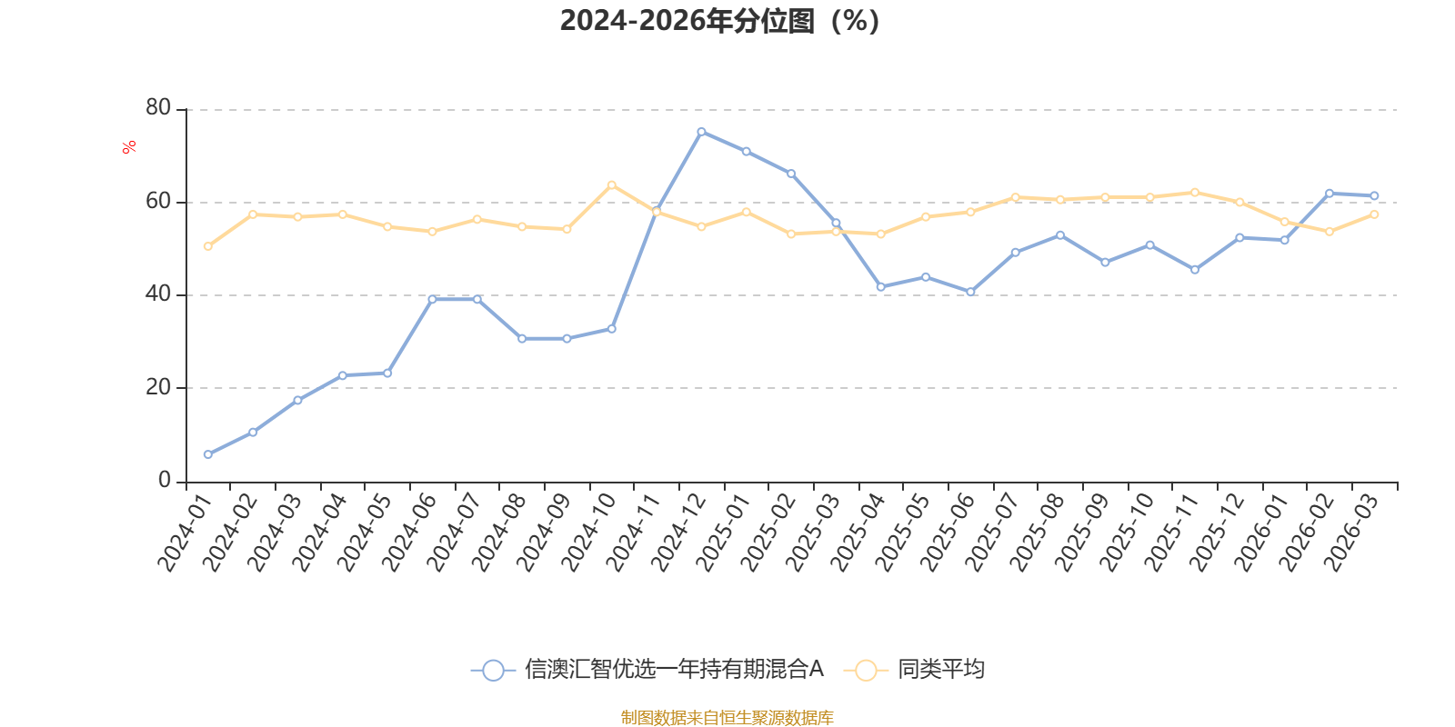 通过所选区间该基金净值增长率分位图,可以观察该基金与同类基金业绩比较情况。图为坐标原点到区间内某时点的净值增长率在同类基金中的分位数。