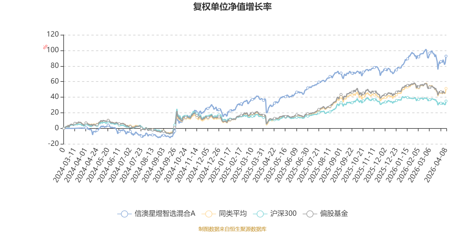 截至4月8日,信澳星煜智选混合A近三个月复权单位净值增长率为5.09%,位于同类可比基金146/689;近半年复权单位净值增长率为11.85%,位于同类可比基金136/689;近一年复权单位净值增长率为60.62%,位于同类可比基金150/685。