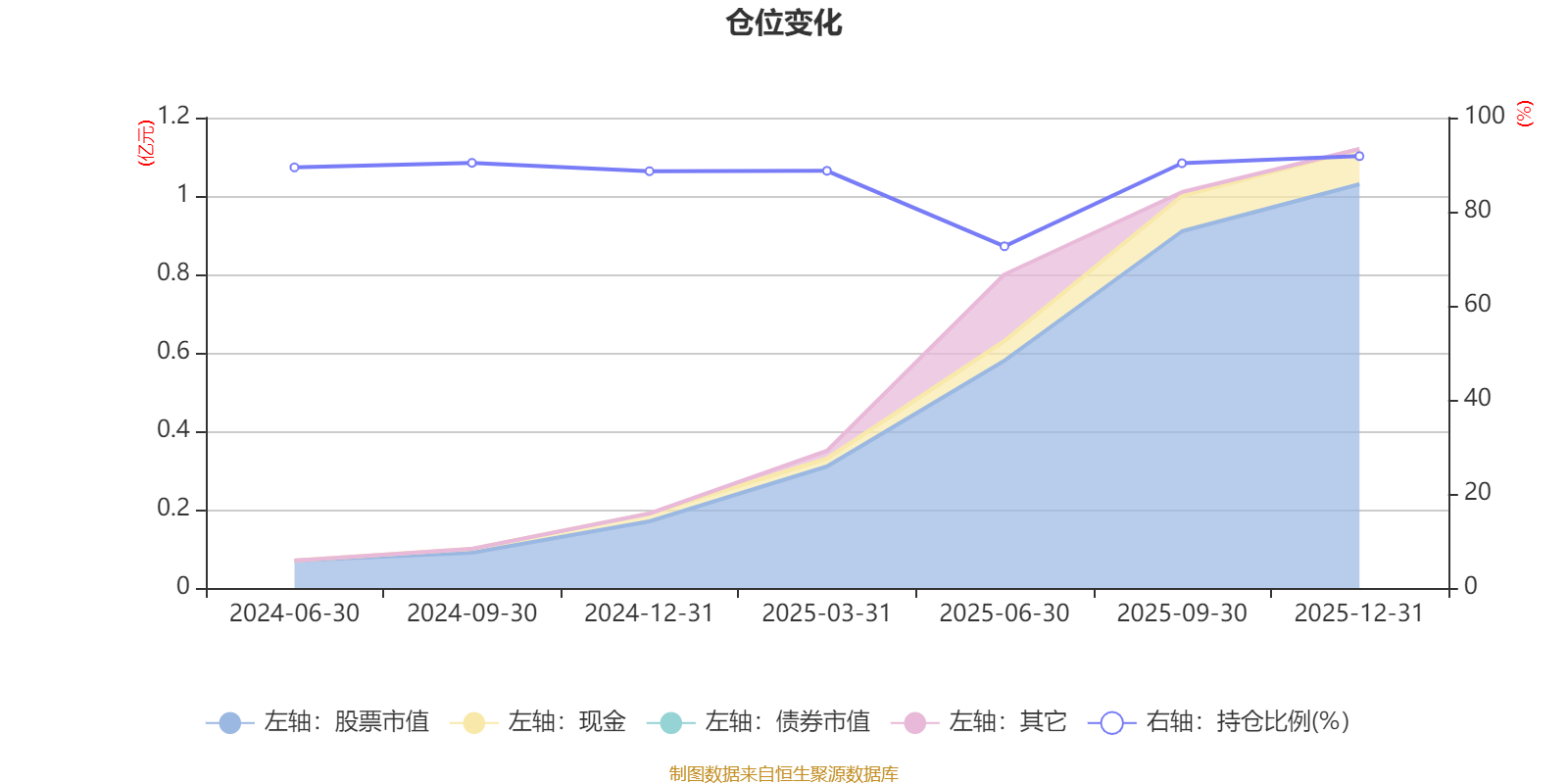 据定期报告数据统计,成立以来平均股票仓位为87.4%,同类平均为84.04%。2025年末基金达到91.8%的最高仓位,2025年上半年末最低,为72.64%。