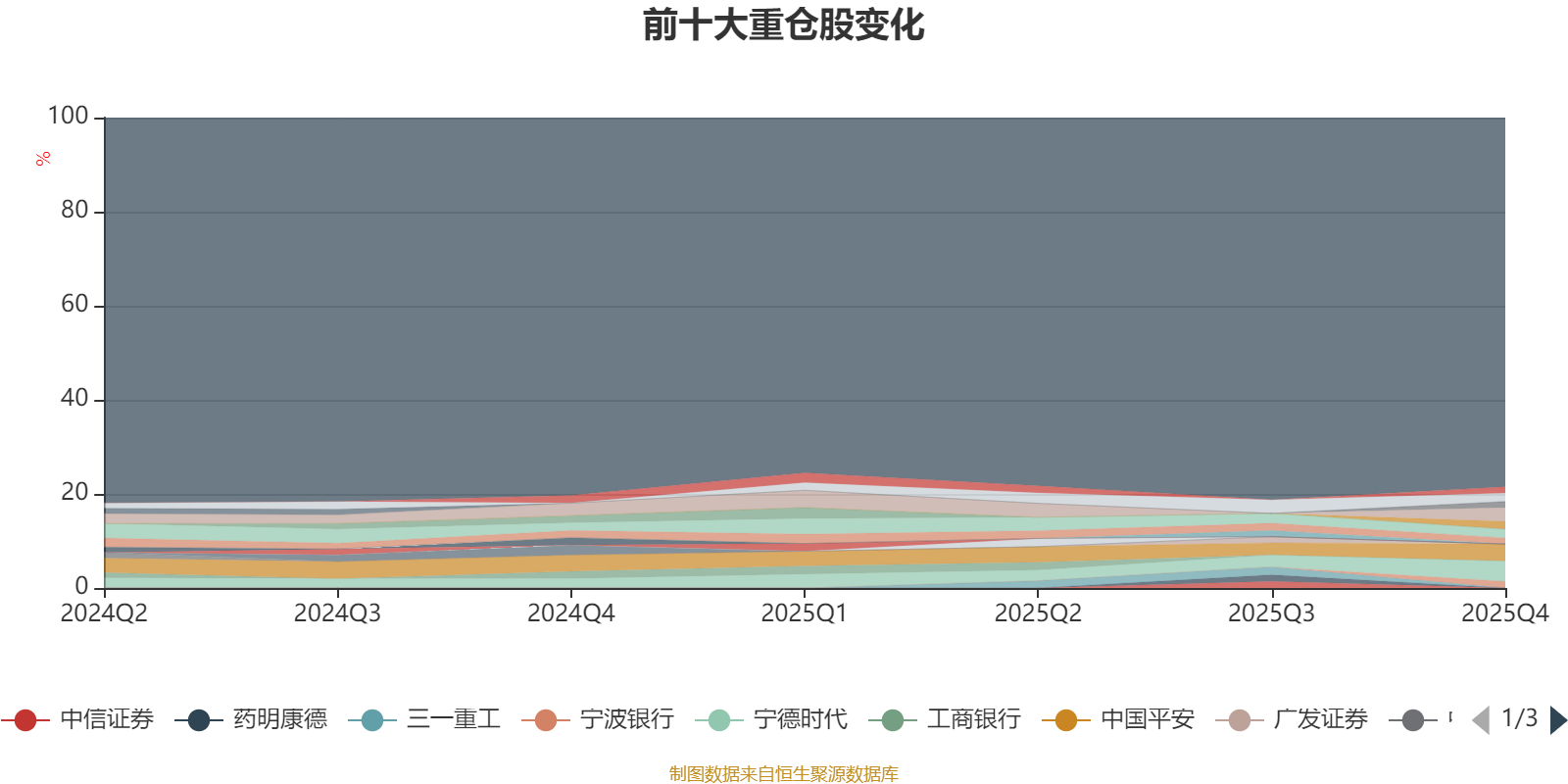 截至2025年末,基金十大重仓股分别是宁德时代、中国平安、招商银行、贵州茅台、紫金矿业、中际旭创、宁波银行、兴业银行、海尔智家、美的集团。