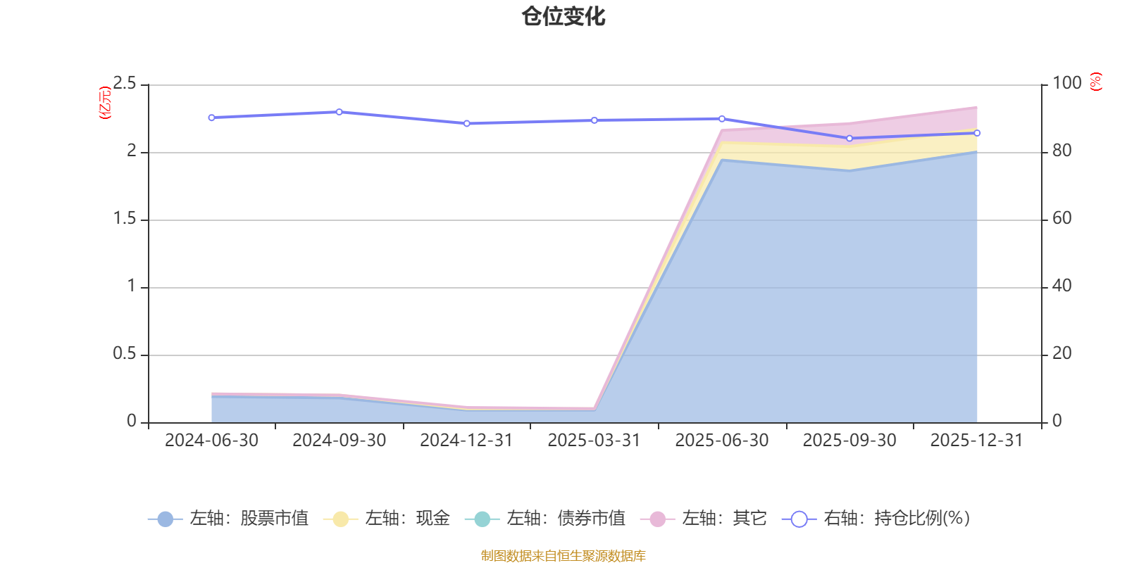 据定期报告数据统计,成立以来平均股票仓位为88.49%,同类平均为84.04%。2024年三季度末基金达到91.87%的最高仓位,2025年三季度末最低,为84.04%。