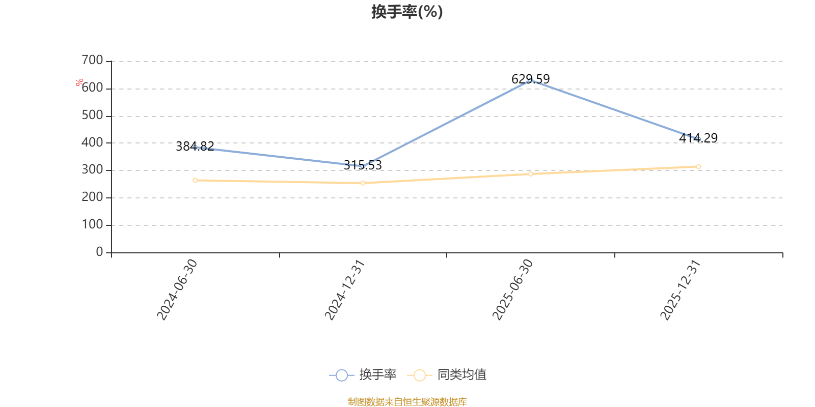 截至2025年12月31日,基金最近一年换手率约744.48%,持续高于同类均值。