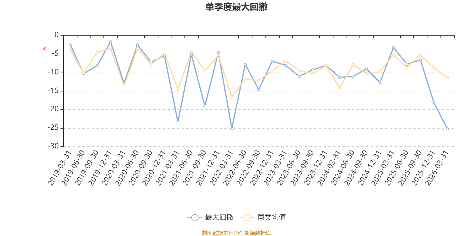 截至4月8日,基金近三年最大回撤为28.26%,同类可比基金排名542/1264。单季度最大回撤出现在2026年一季度,为25.25%。