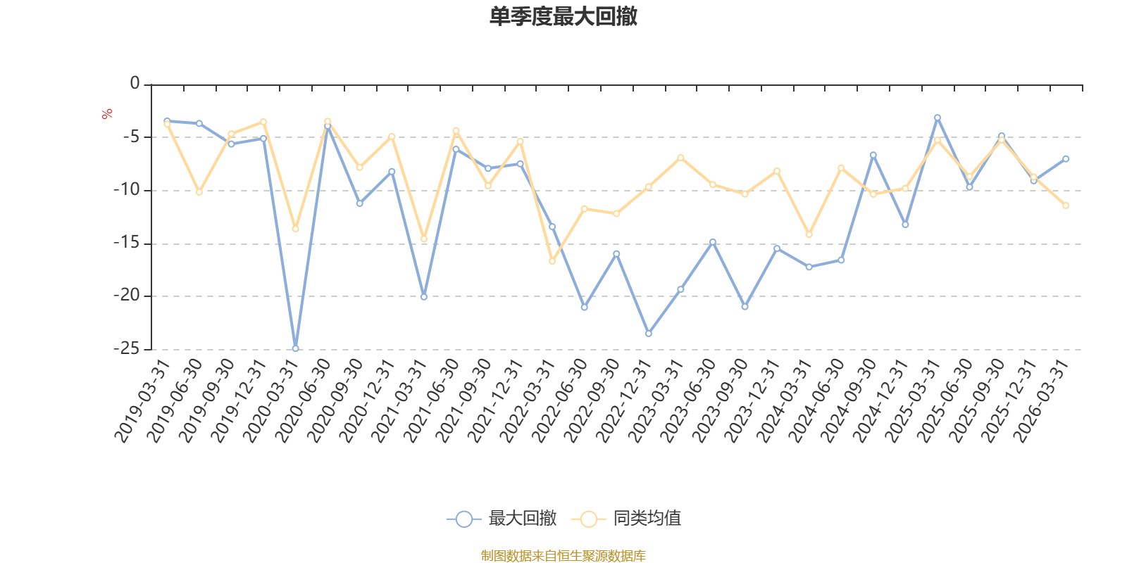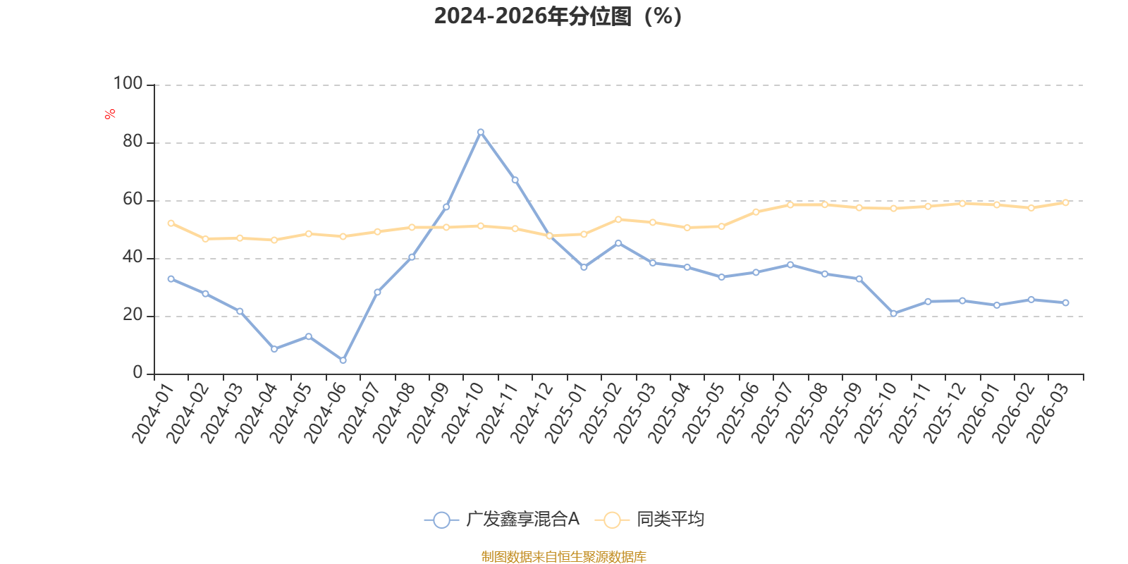 通过所选区间该基金净值增长率分位图,可以观察该基金与同类基金业绩比较情况。图为坐标原点到区间内某时点的净值增长率在同类基金中的分位数。