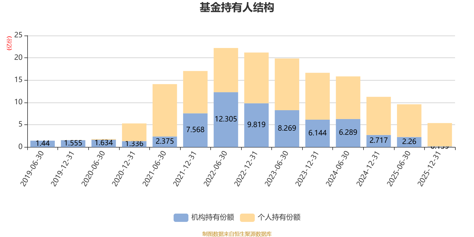 截至2025年12月31日,基金持有人共计10.79万户,合计持有5.39亿份。其中管理人员工持有86.7万份,占比0.16%,机构持有份额占比2.58%,个人投资者占比97.42%。