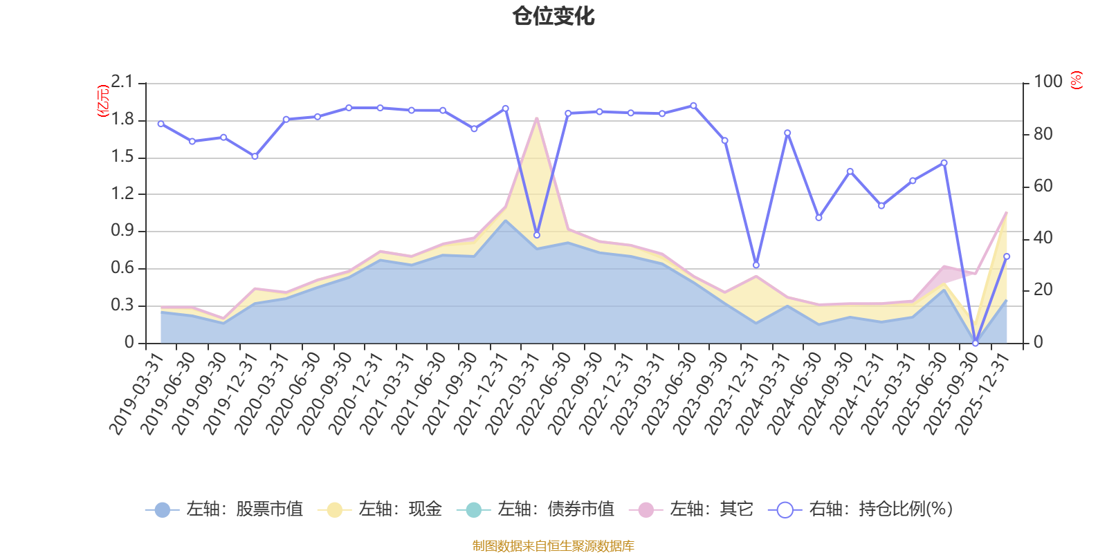 据定期报告数据统计,近三年平均股票仓位为58.37%,同类平均为72.57%。2023年上半年末基金达到91.29%的最高仓位,2023年末最低,为30.03%。