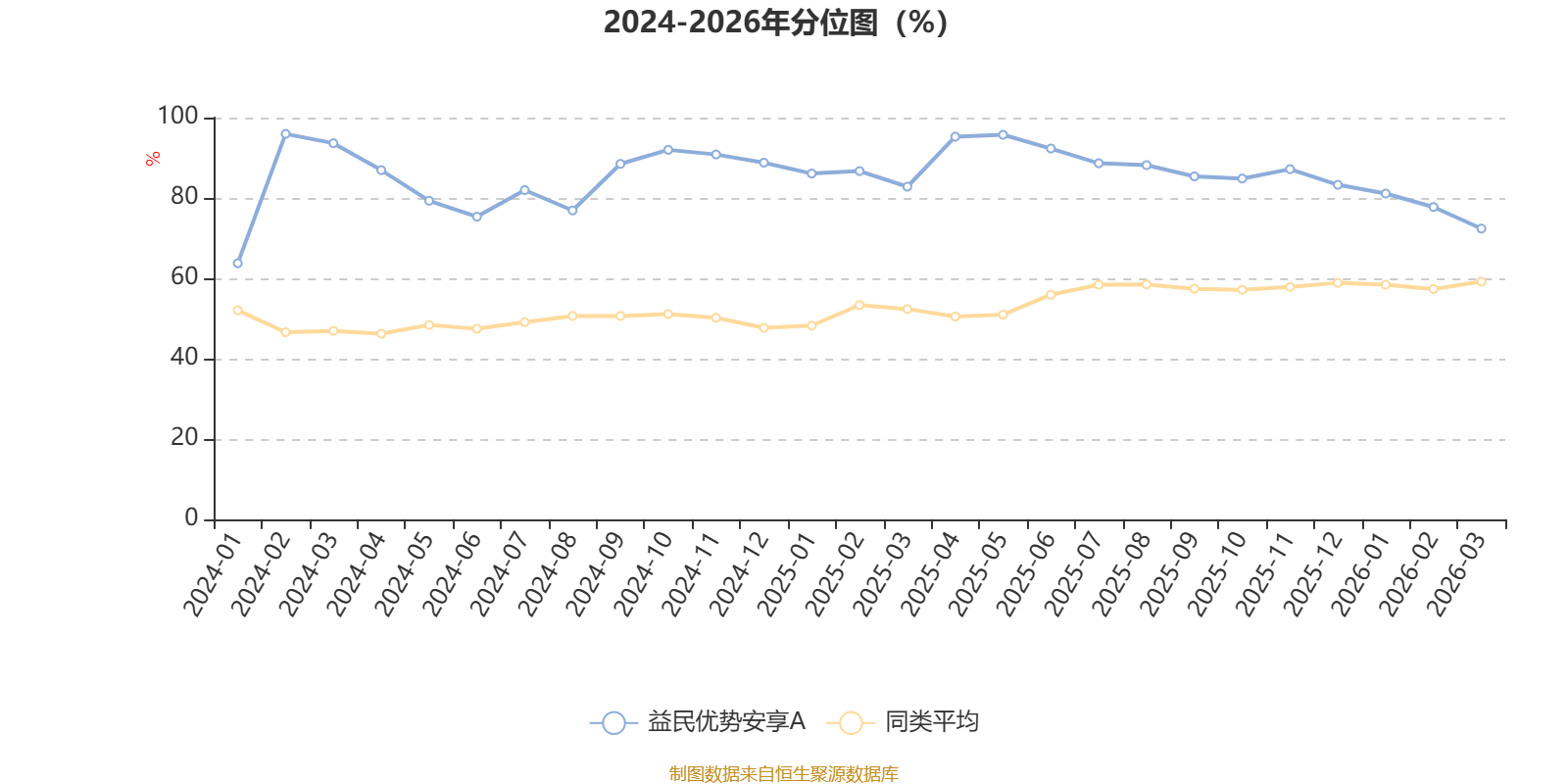 通过所选区间该基金净值增长率分位图,可以观察该基金与同类基金业绩比较情况。图为坐标原点到区间内某时点的净值增长率在同类基金中的分位数。