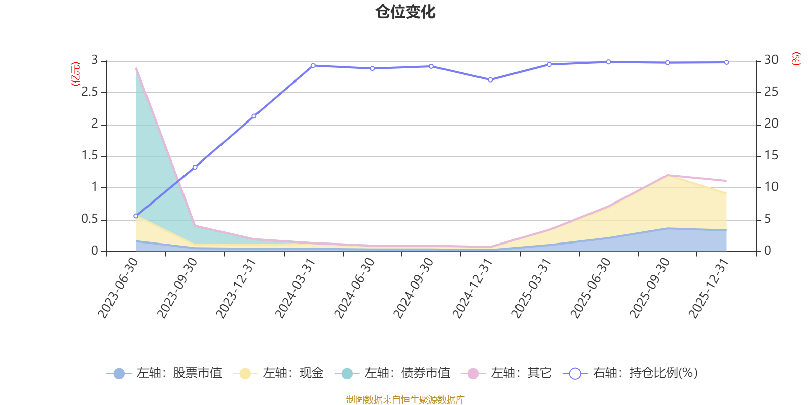 据定期报告数据统计,成立以来平均股票仓位为24.82%,同类平均为19.2%。2025年上半年末基金达到29.83%的最高仓位,2023年上半年末最低,为5.57%。