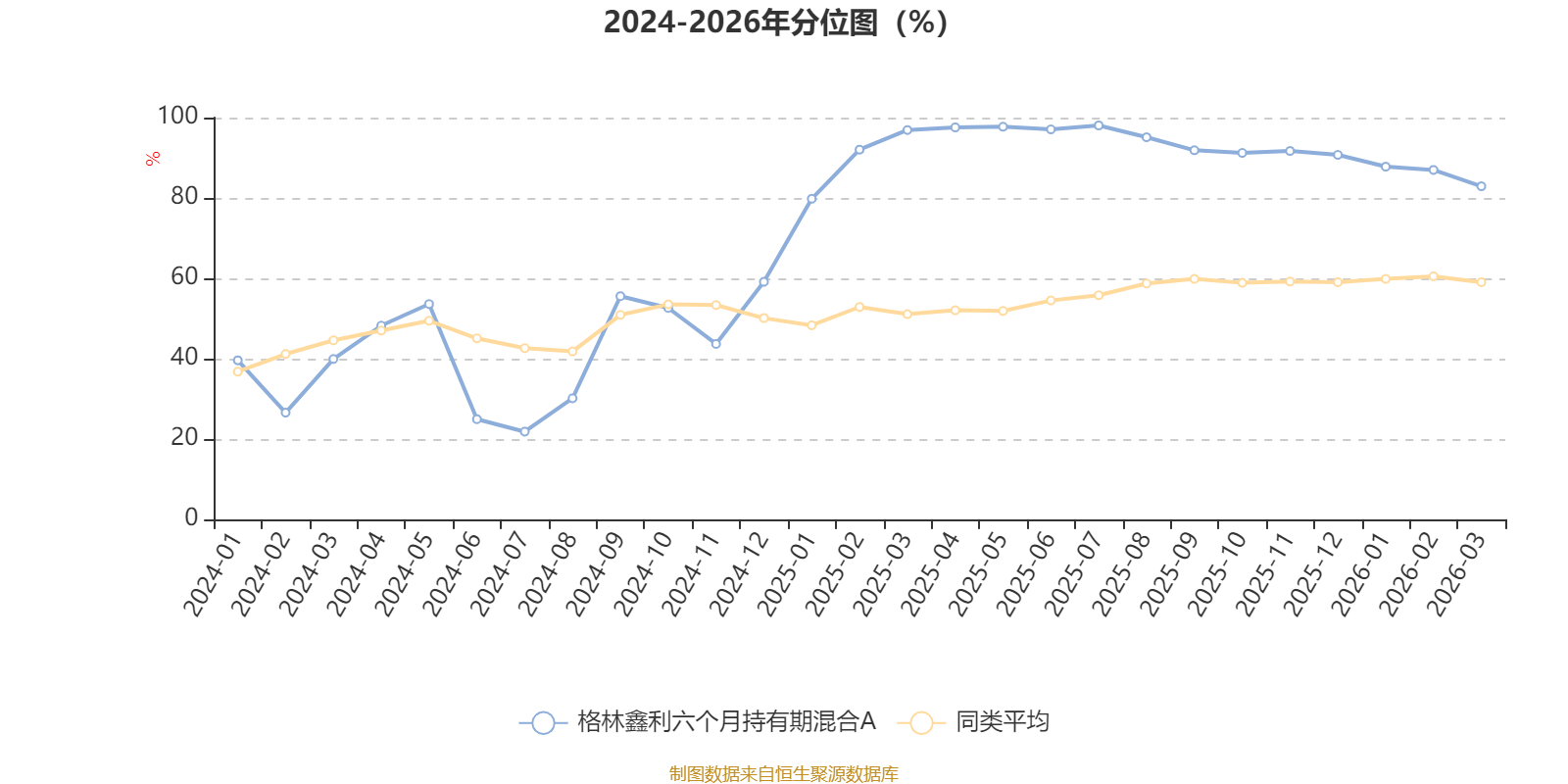 通过所选区间该基金净值增长率分位图,可以观察该基金与同类基金业绩比较情况。图为坐标原点到区间内某时点的净值增长率在同类基金中的分位数。