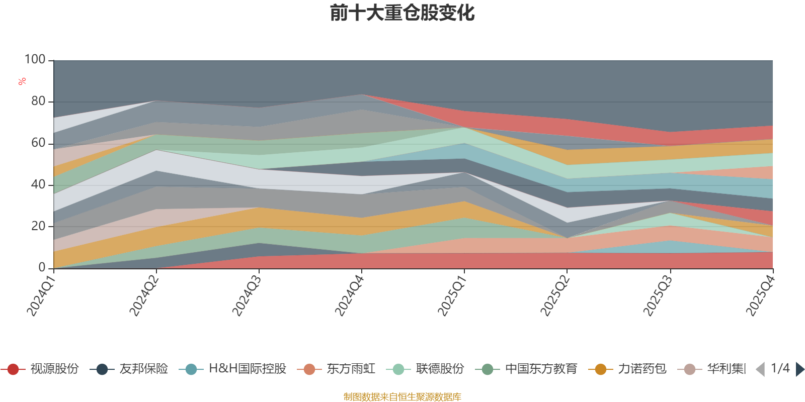 该基金持股集中度较高,近2年前十大重仓股集中度长期超过60%。截至2025年末,基金十大重仓股分别是中简科技、视源股份、东方雨虹、珀莱雅、新奥能源、申洲国际、华恒生物、美埃科技、港华智慧能源、力诺药包。