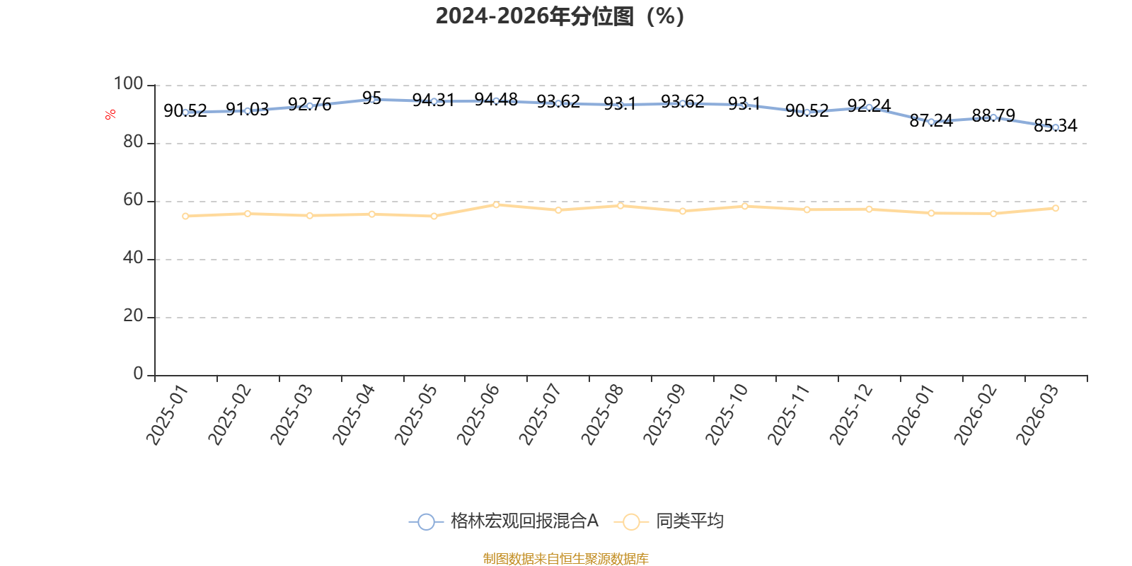 通过所选区间该基金净值增长率分位图,可以观察该基金与同类基金业绩比较情况。图为坐标原点到区间内某时点的净值增长率在同类基金中的分位数。