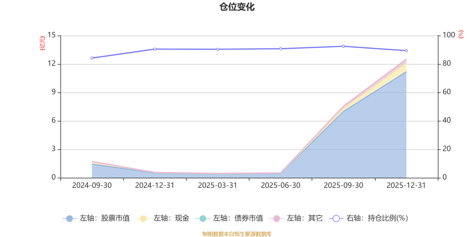 据定期报告数据统计,成立以来平均股票仓位为89.59%,同类平均为84.04%。2025年三季度末基金达到92.45%的最高仓位,2024年三季度末最低,为84.18%。