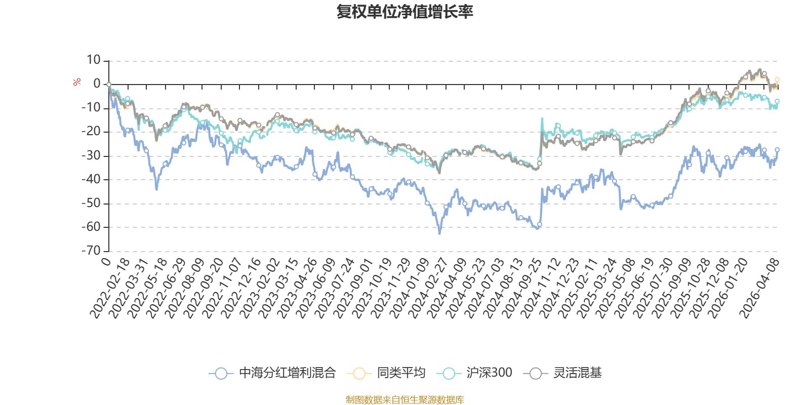 截至4月8日,中海分红增利混合近三个月复权单位净值增长率为1.97%,位于同类可比基金416/1287;近半年复权单位净值增长率为1.50%,位于同类可比基金733/1286;近一年复权单位净值增长率为53.30%,位于同类可比基金364/1286;近三年复权单位净值增长率为-1.83%,位于同类可比基金997/1286。