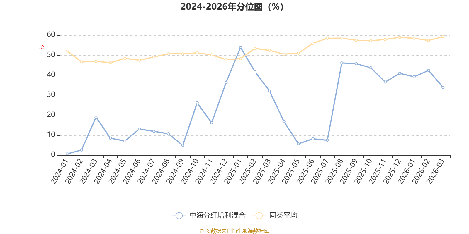 通过所选区间该基金净值增长率分位图,可以观察该基金与同类基金业绩比较情况。图为坐标原点到区间内某时点的净值增长率在同类基金中的分位数。