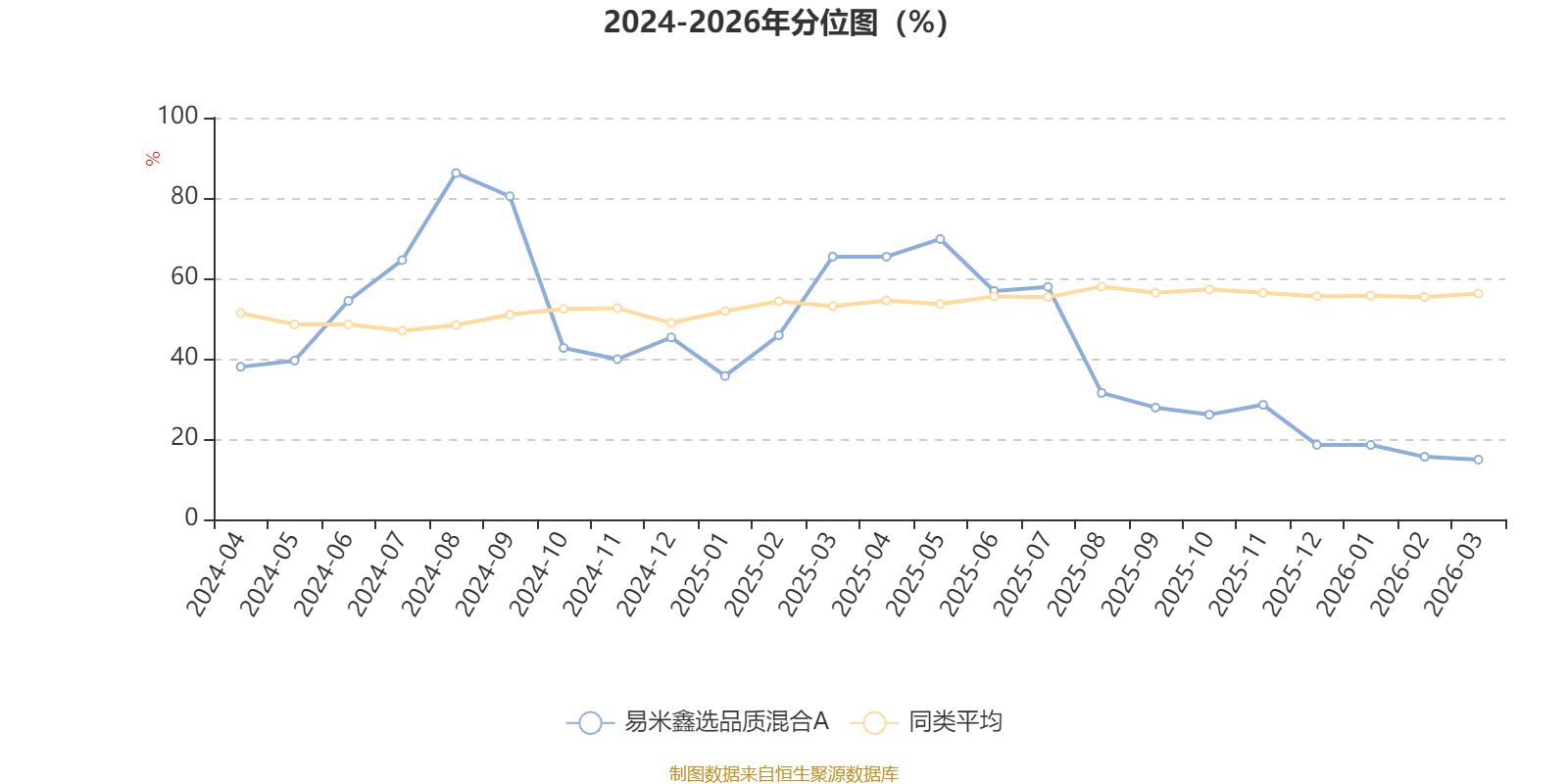 通过所选区间该基金净值增长率分位图,可以观察该基金与同类基金业绩比较情况。图为坐标原点到区间内某时点的净值增长率在同类基金中的分位数。