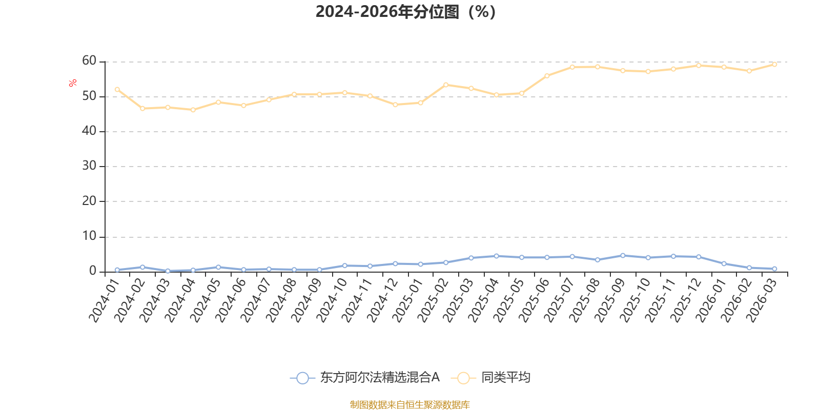通过所选区间该基金净值增长率分位图,可以观察该基金与同类基金业绩比较情况。图为坐标原点到区间内某时点的净值增长率在同类基金中的分位数。