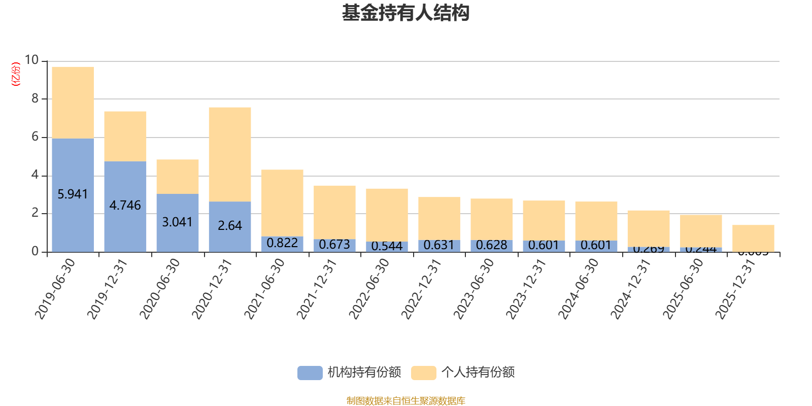 截至2025年12月31日,基金持有人共计9958户,合计持有1.41亿份。其中管理人员工持有534.17万份,占比3.78%,机构持有份额占比0.22%,个人投资者占比99.78%。