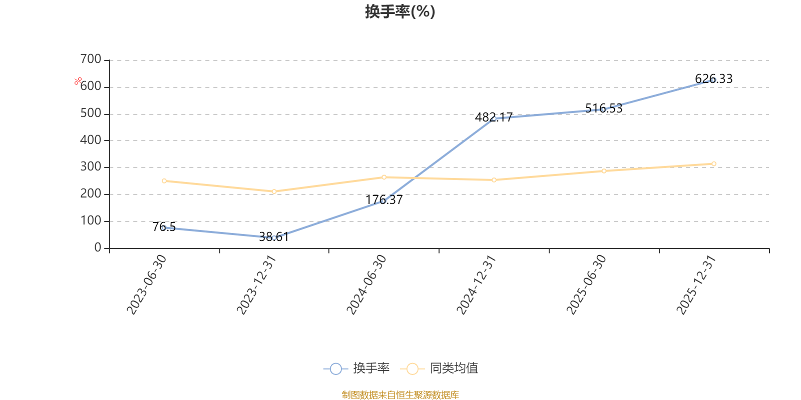 截至2025年12月31日,基金最近一年换手率约1132.71%,持续1年高于同类均值。