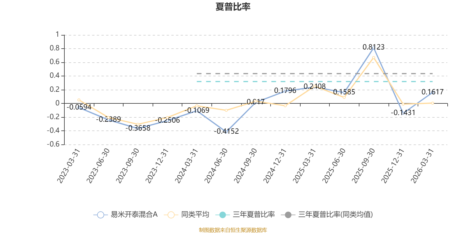 截至3月31日,基金近三年夏普比率为0.3198,位于同类可比基金253/393。