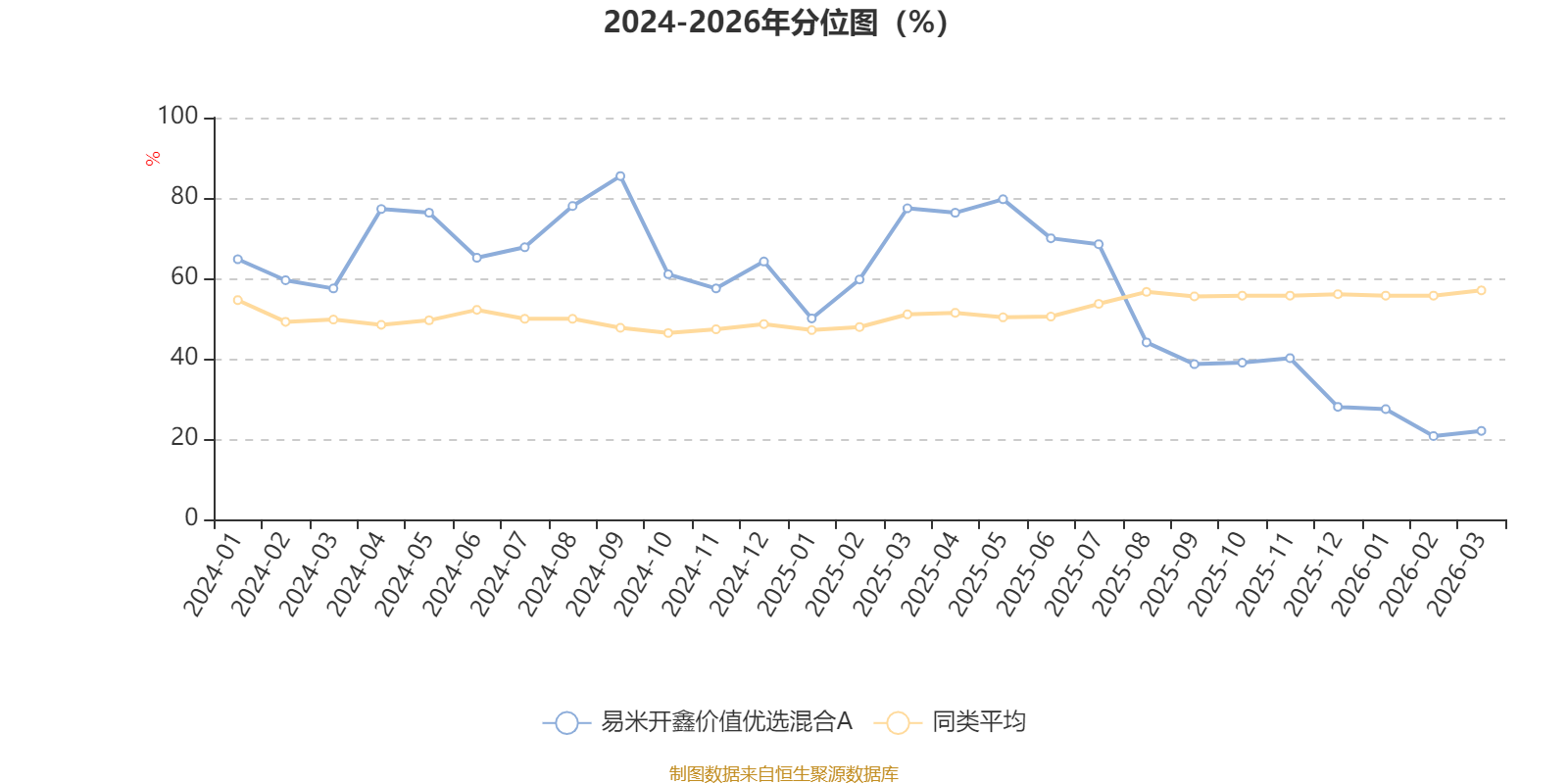通过所选区间该基金净值增长率分位图,可以观察该基金与同类基金业绩比较情况。图为坐标原点到区间内某时点的净值增长率在同类基金中的分位数。