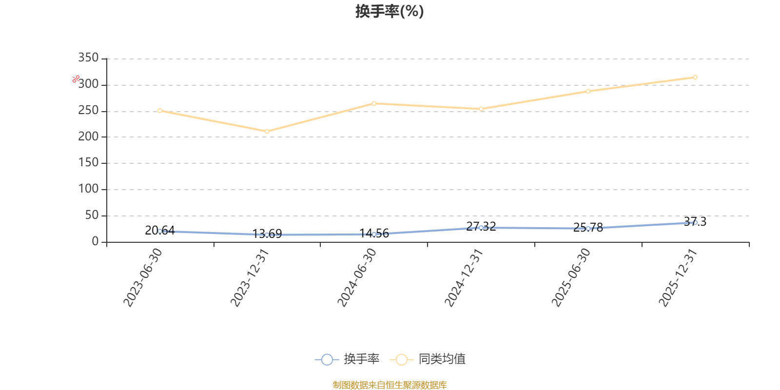 截至2025年12月31日,基金最近一年换手率约61.58%,持续低于同类均值。