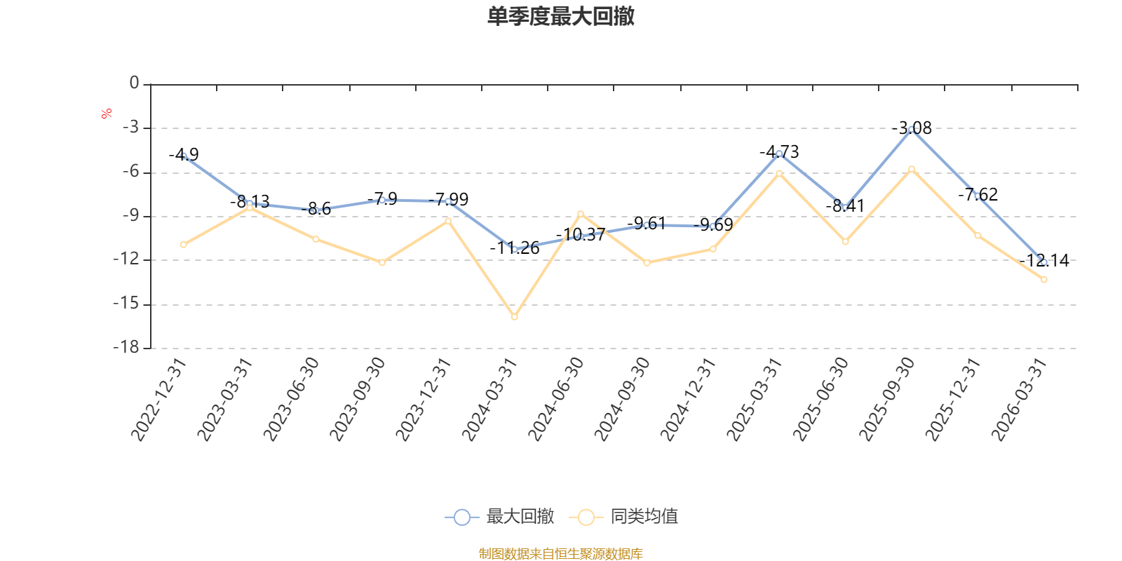 截至4月8日,基金近三年最大回撤为20.74%,同类可比基金排名37/392。单季度最大回撤出现在2026年一季度,为12.14%。