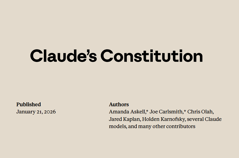 Claude宪法最新更新版本为2026年1月21日来源:Anthropic 官网
