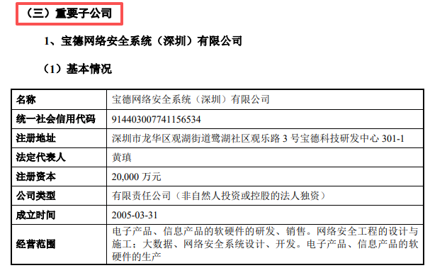 2026年1月披露的申报稿显示,宝德网络安全系统(深圳)有限公司(下称“宝德网安”)为宝德计算的重要子公司。2023年和2024年以及2025年前7个月(下称“报告期”),宝德计算净利润为2.30亿元、1.81亿元、-9083.47万元,而宝德网安同期净利润为9167.48万元、5208.16万元、-836.80万元。