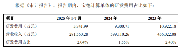 需要指出的是,慧博云通2026年3月13日披露的公告显示,宝德计算单体报告期内的研发费用占比分别为2.4%、1.55%、2.04%。根据《高新技术企业认定管理办法》,高新技术企业复审要求包括:最近一年销售收入在 2 亿元以上的企业,近三年研发费占近三年销售收入之比不低于3%。