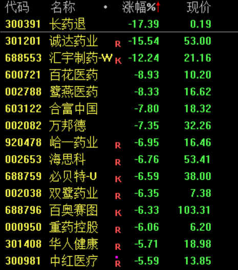 下跌方面,医药股冲高回落,诚达药业、汇宇制药跌超10%。