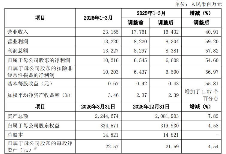 中信证券:一季度净利润102亿元,同比增长55%