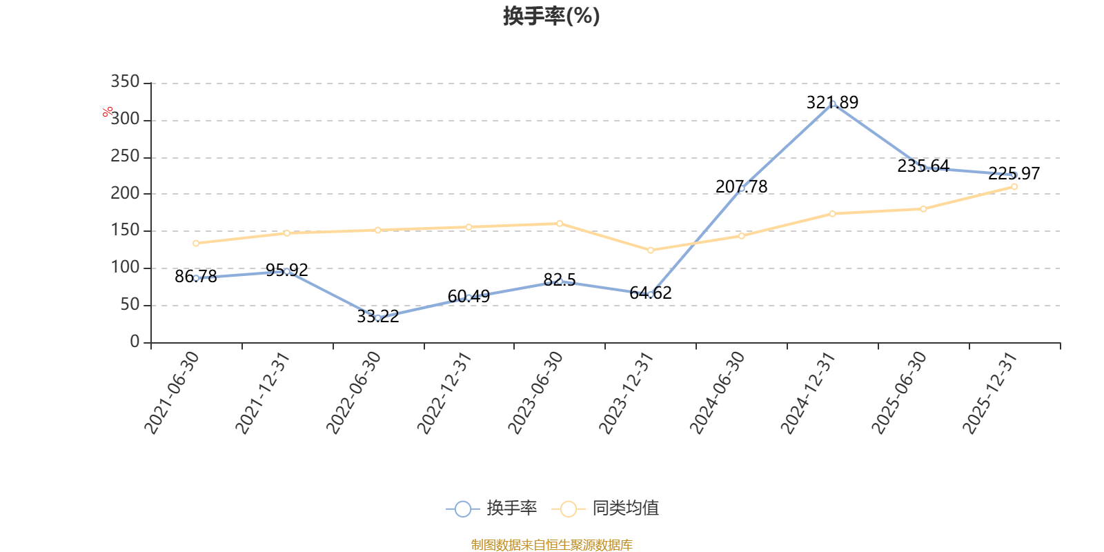 截至2025年12月31日,基金最近一年换手率约460.4%,持续2年高于同类均值。