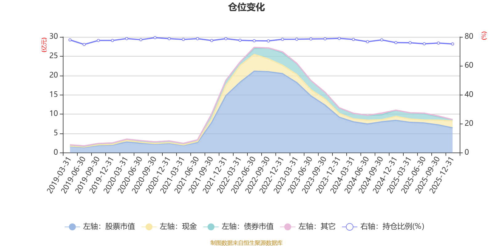 据定期报告数据统计,近三年平均股票仓位为77.13%,同类平均为72.57%。2020年三季度末基金达到79.48%的最高仓位,2019年上半年末最低,为74.77%。