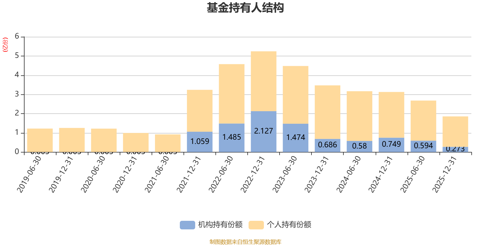截至2025年12月31日,基金持有人共计3.17万户,合计持有1.86亿份。其中管理人员工持有40.31万份,占比0.22%,机构持有份额占比14.73%,个人投资者占比85.27%。