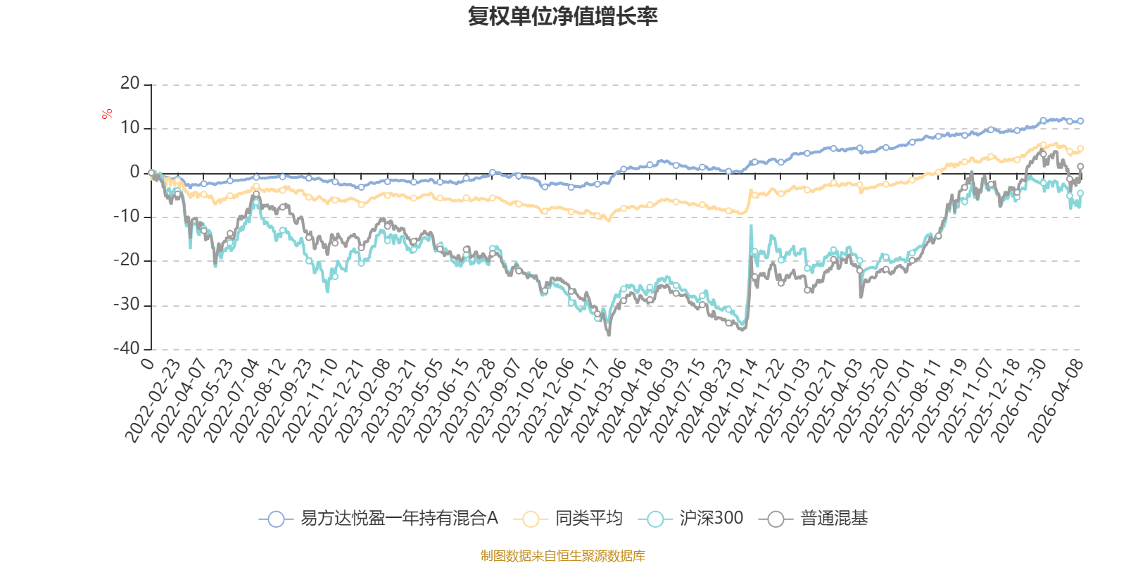 该基金属于偏债混合型基金。截至4月8日,单位净值为1.146元。基金经理是王成,目前管理的9只基金近一年均为正收益。其中,截至4月8日,易方达丰华债券A近一年复权单位净值增长率最高,达10.33%;易方达悦享一年持有混合A最低,为3.71%。