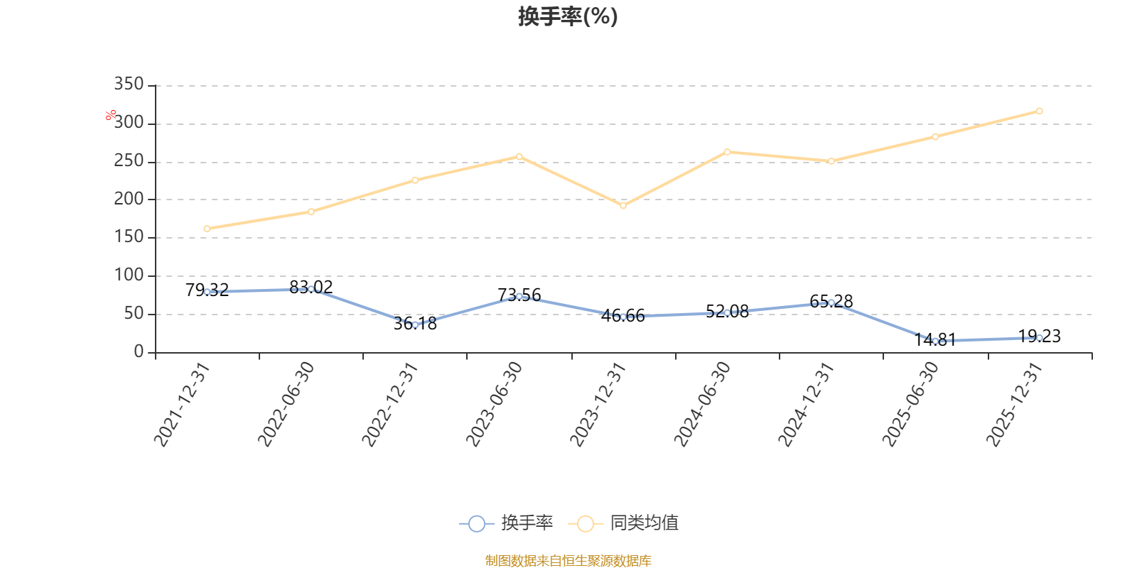 截至2025年12月31日,基金最近一年换手率约34.02%,持续低于同类均值。