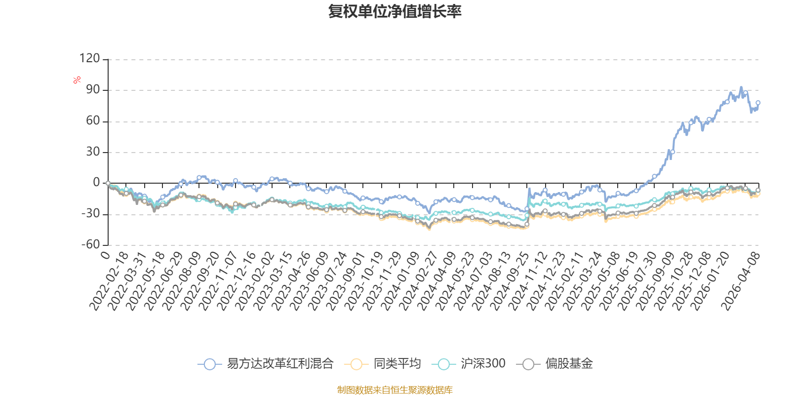 截至4月8日,易方达改革红利混合近三个月复权单位净值增长率为1.55%,位于同类可比基金52/185;近半年复权单位净值增长率为14.20%,位于同类可比基金18/185;近一年复权单位净值增长率为117.28%,位于同类可比基金4/185;近三年复权单位净值增长率为78.03%,位于同类可比基金8/177。